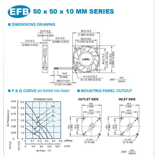 EFB0512HA Brushless Delta Brand 5050mm Square Fan Wire 0.15A 12VDC 1.2W Images |